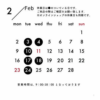2月の休業日